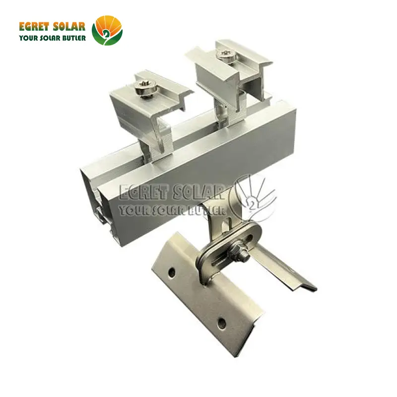 แคลมป์หลังคาที่ปรับการติดตั้งพลังงานแสงอาทิตย์ให้การปรับทั้งแนวตั้งและด้านข้าง มันช่วยให้การปรับความสูงของรางยึดอยู่เหนือพื้นผิวหลังคาโดยรางติดตั้งพลังงานแสงอาทิตย์ขนาด 40x40 มม. สิ่งนี้จะชดเชยการเปลี่ยนแปลงของความสูงของซี่โครงและความลาดชันของหลังคาเพื่อให้มั่นใจว่าการจัดวางแนวนอนของแผงโซลาร์เซลล์ นอกจากนี้ยังช่วยให้การวางตำแหน่งที่แม่นยำของแคลมป์ตามความยาวของซี่โครงสำหรับการจัดตำแหน่งที่ดีที่สุดด้วยรูยึดแผงโซลาร์เซลล์หรือรางอลูมิเนียมขนาด 40x40 มม.