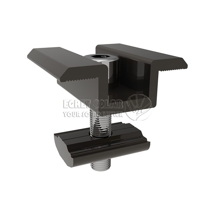 ตำแหน่งการติดตั้งของแคลมป์ปลายสำหรับแผงโซลาร์เซลล์อยู่ที่จุดเริ่มต้นและจุดสิ้นสุดของอาร์เรย์ และมีเพียงกรอบด้านนอกของโมดูลเดียวเท่านั้นที่ได้รับการแก้ไข แรงหลักส่วนใหญ่รับภาระลมที่ขอบที่แข็งแกร่งที่สุดจากด้านหนึ่งของโมดูล และในขณะเดียวกันก็มีบทบาทในการตรึงขั้วต่อ ต้านทานแรงดันลมที่รุนแรง และการปิดผนึกขอบ ลักษณะที่ปรากฏมักได้รับการออกแบบโดยปิดปลายด้านหนึ่งหรือมีฝาปิดปลาย
