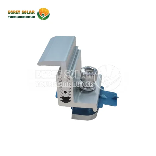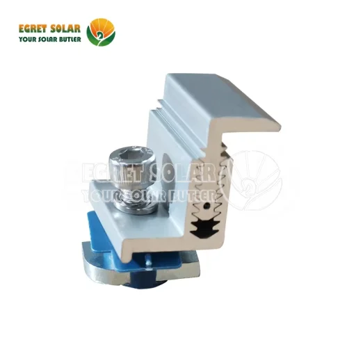 Egret Solar จัดเตรียมแคลมป์ปลายแผงเซลล์แสงอาทิตย์ปรับได้สำหรับรางเหล็ก C แคลมป์ปลายทำจากอลูมิเนียมคุณภาพสูงที่มีความมันวาวและโครงสร้างขนาดกะทัดรัดพื้นผิวที่ผลิตด้วยเทคโนโลยีการผลิตที่ดีไม่ใช่เรื่องง่ายที่จะเกิดสนิมหรือกัดกร่อนดังนั้นมันจึงสามารถให้บริการคุณได้เป็นเวลานาน พื้นผิวผลิตด้วยเทคโนโลยีการผลิตที่ดีไม่ใช่เรื่องง่ายที่จะเกิดสนิมหรือกัดกร่อนดังนั้นจึงสามารถให้บริการคุณเป็นเวลานาน